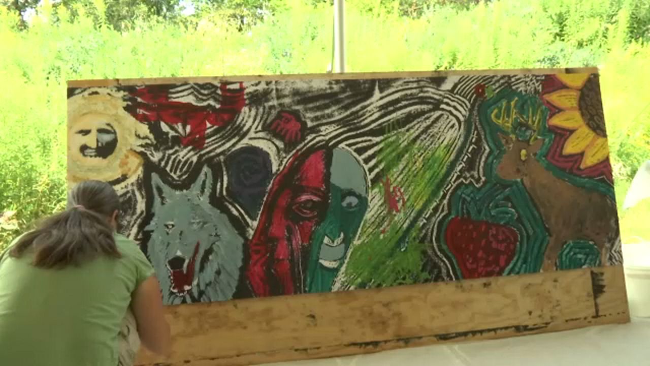 Attendees paint mural based on Iroquois Creation Story at Ganondagan - Spectrum News